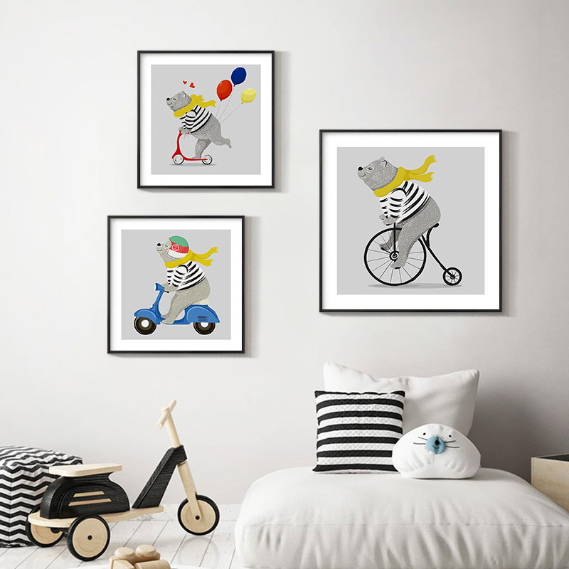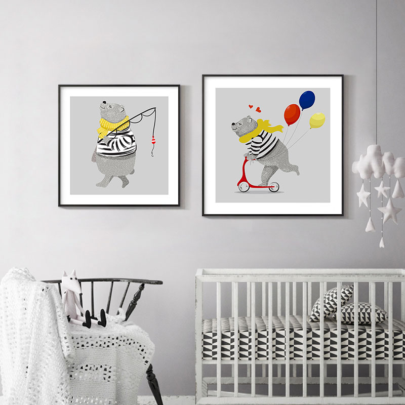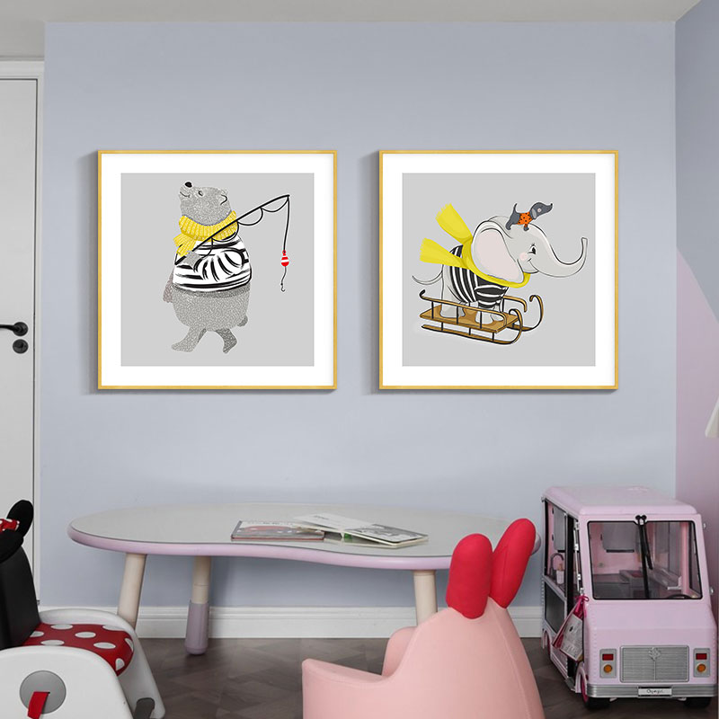 Modern simple children's room decoration boy girl bedroom bedside room painting Nordic cartoon animal mural