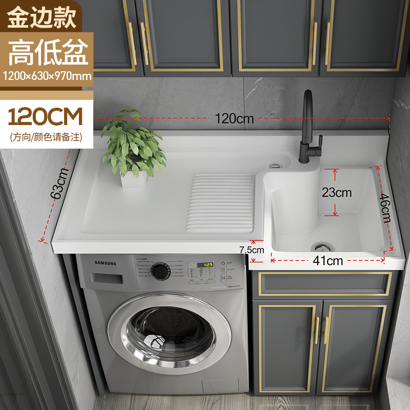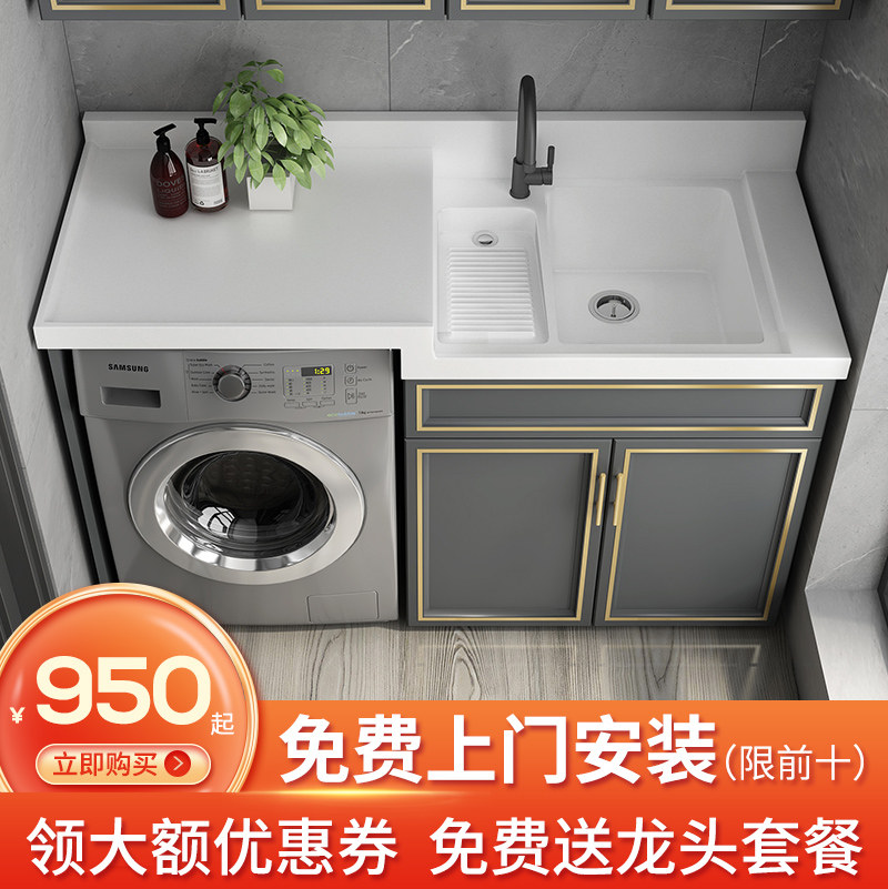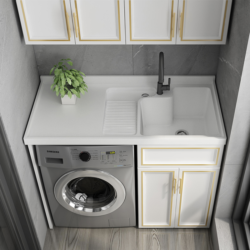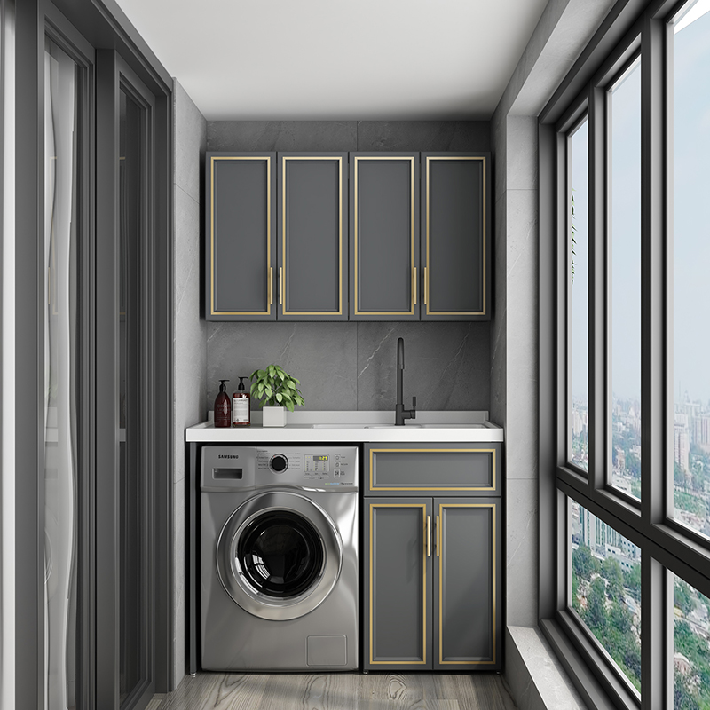The combination of customized aluminum balcony washing machine cabinets simply deepened the double-water washing table big pool wash basin