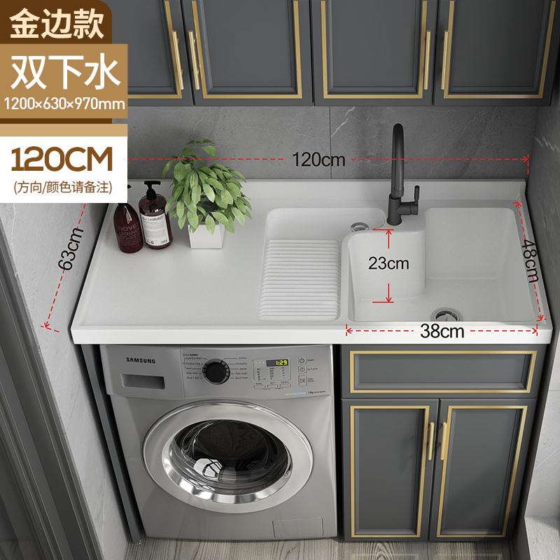 The combination of customized aluminum balcony washing machine cabinets simply deepened the double-water washing table big pool wash basinZoom