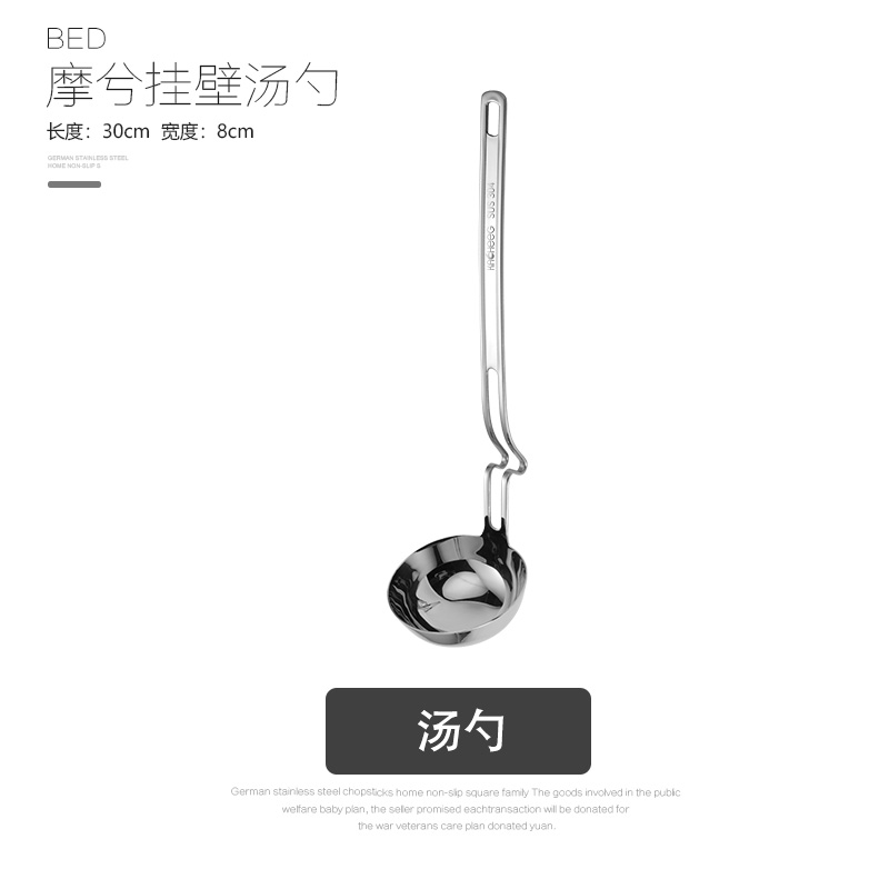 The German soup spoon has a long handle of 304 stainless steel. The family uses a small hot pot to leak a spoonful of porridge to drink large soup
