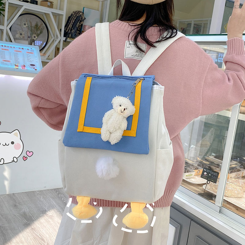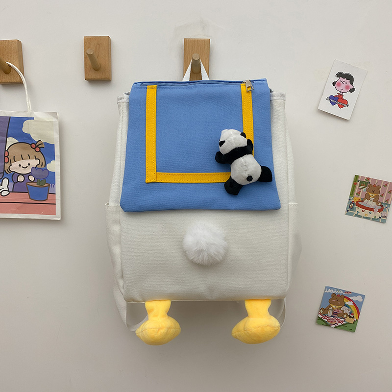 Autumn and winter cute duck cartoon canvas double-shoulder bag women's bag 2021 new student school bag small crowd travel backpackZoom