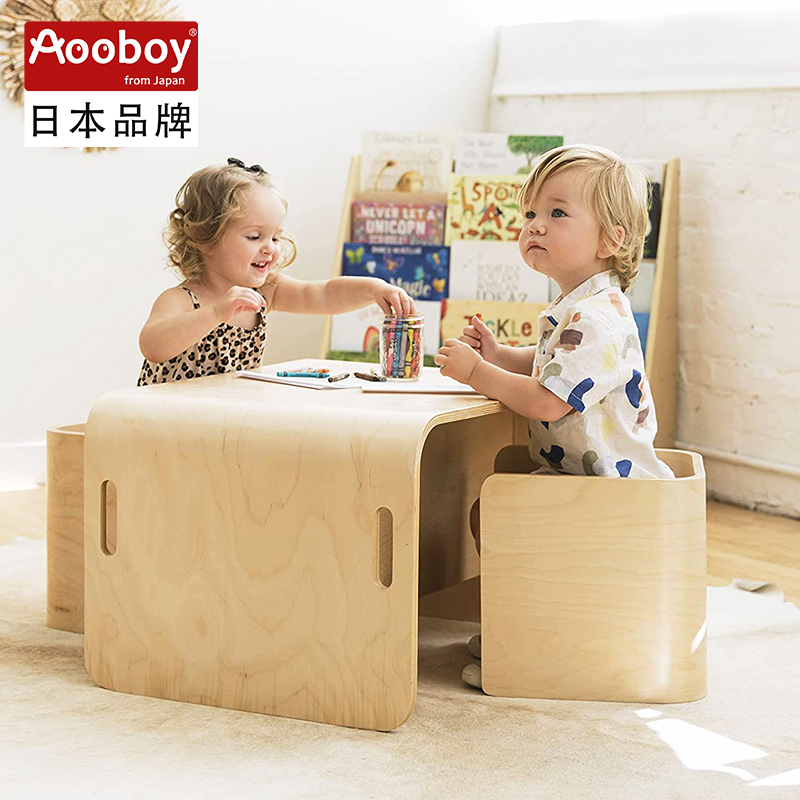 Japanese Aooboy children's tables and chairs are equipped with solid wood multifunctional baby kindergarten table and chairs for table study