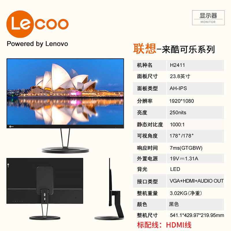 Lenovo (Lecoo) monitor to cool IPS238 inch H2411 thin HDMI VGA take-out notebook