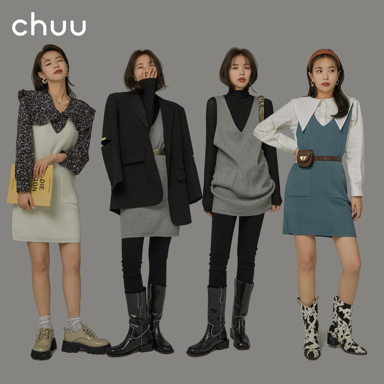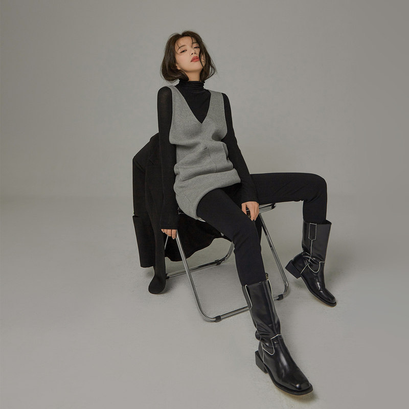 CHUU pocket vest woman 2023 new spring straight tube thin short V-tracked vest vest vest vest knitted dress