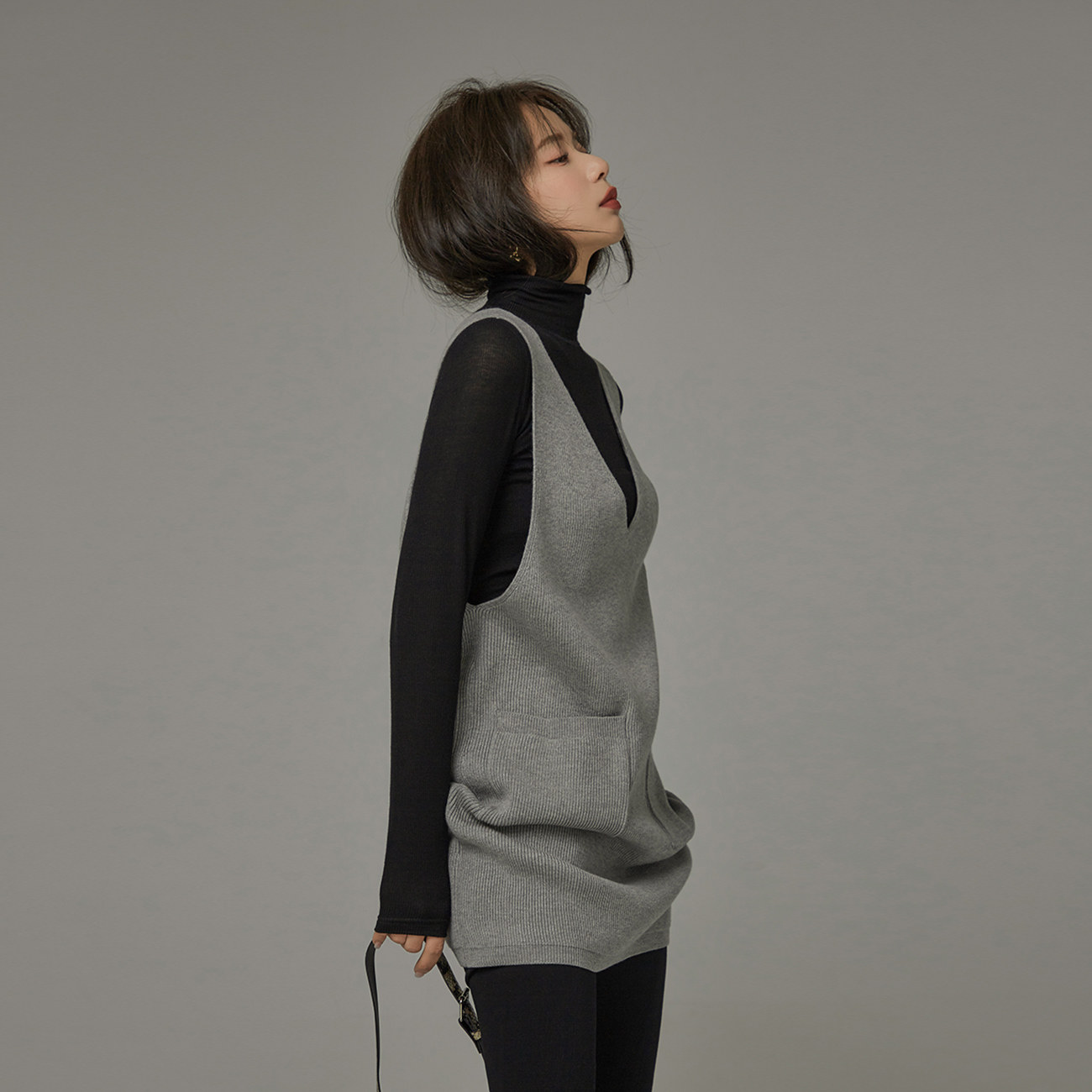 CHUU pocket vest woman 2023 new spring straight tube thin short V-tracked vest vest vest vest knitted dressZoom