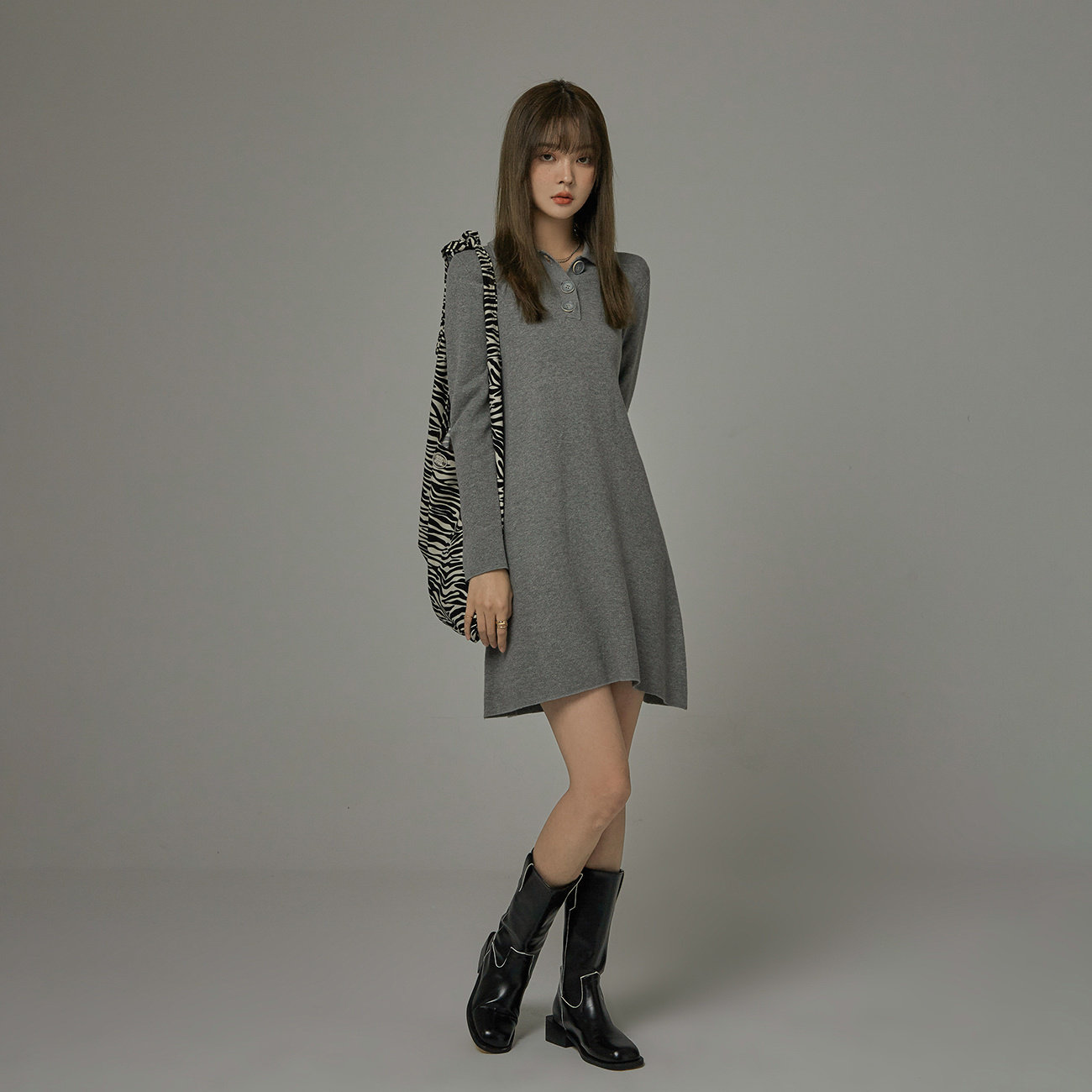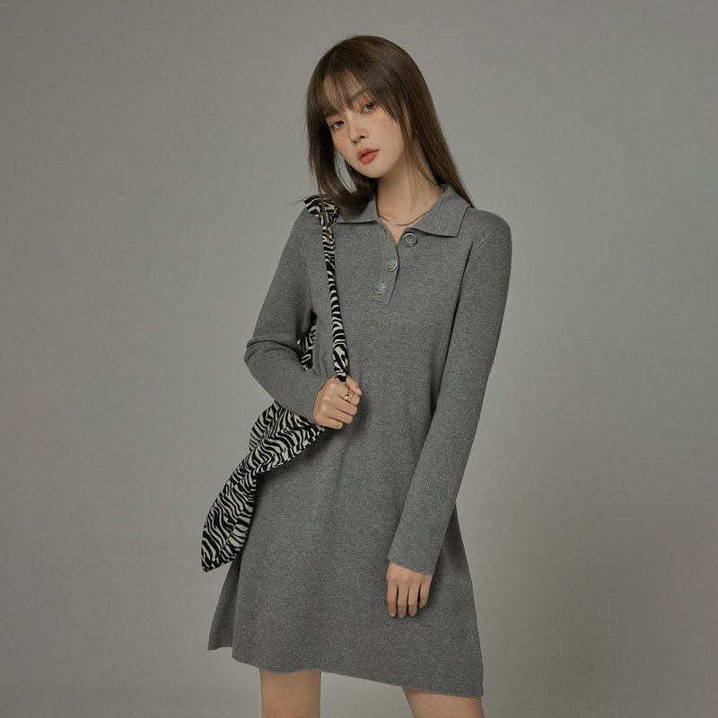 CHUU dress woman 2023 new spring Korean version of Wengpolo neck sweater knitted short skirtZoom