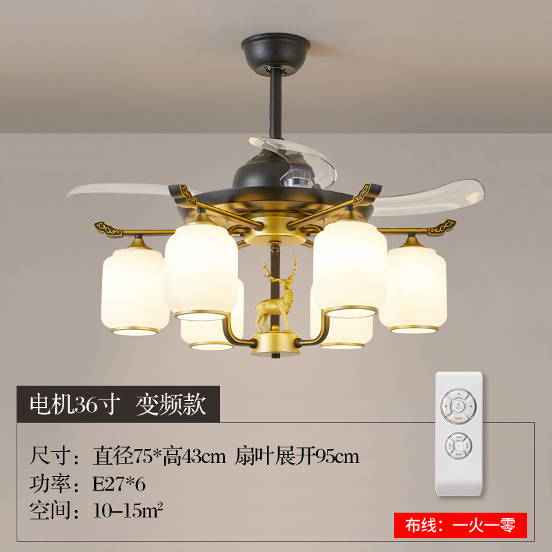 New Chinese Light Luxury Fan Lamp Ceiling Fan Lamp Bedroom Dining Room Home Invisible Fan Modern Minimalist Chandelier with Electric FanZoom
