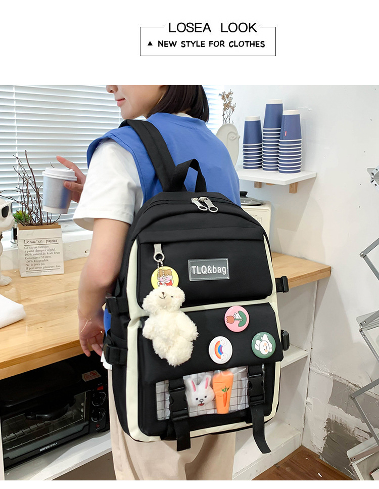 2022 New Korean version of the student backpack campus day department Original fashion four sets of double-shoulder packet package womenZoom