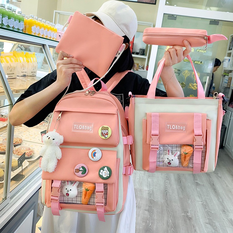 2022 New Korean version of the student backpack campus day department Original fashion four sets of double-shoulder packet package women