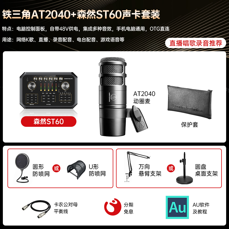 Iron Triangle AT2040 microphone computer aperture microphone sound card recording device full set of live broadcast k song deskIron Triangle AT2040 microphone computer aperture microphone sound card recording device full set of live broadcast k song deskProvide Iron Triangle AT2040 microphone computer aperture microphone sound card recording device full set of live broadcast k song desk by 铁三角官方旗舰店 at chinahao.com. Product #: 655449674039353.96In stock