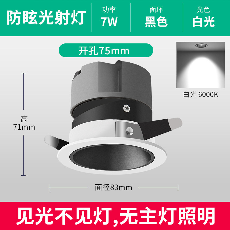 Color classificationDeep anti-glare-7W black cup (hole 75mm)3000K warm light Deep anti-glare-7W black cup (hole 75mm)4000K neutral light Deep anti-7W black cup (hole 75m
