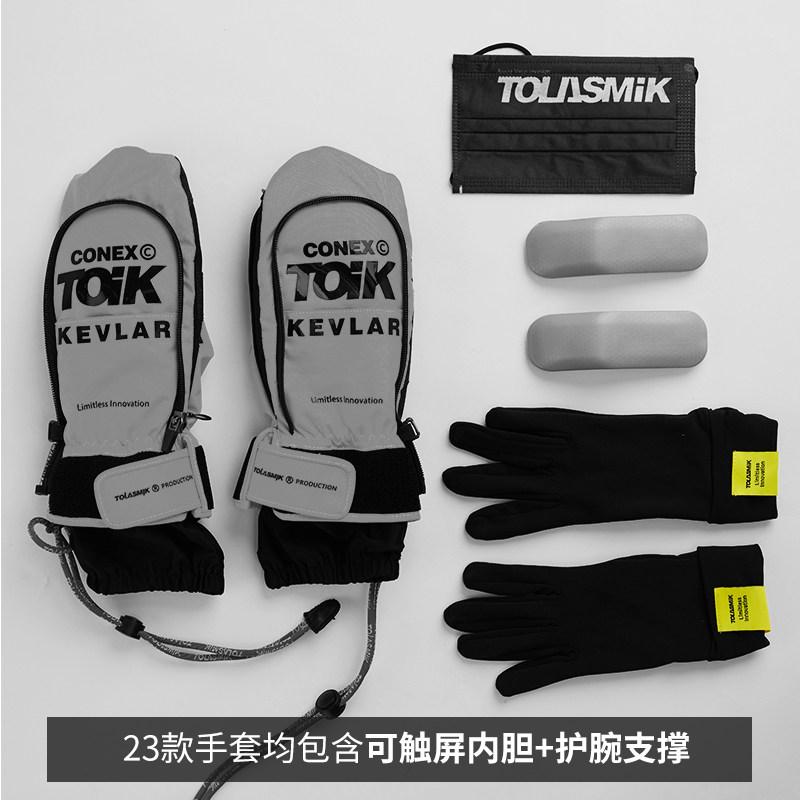 tolasmik single-board ski gloves with braces for men and women with inner guts