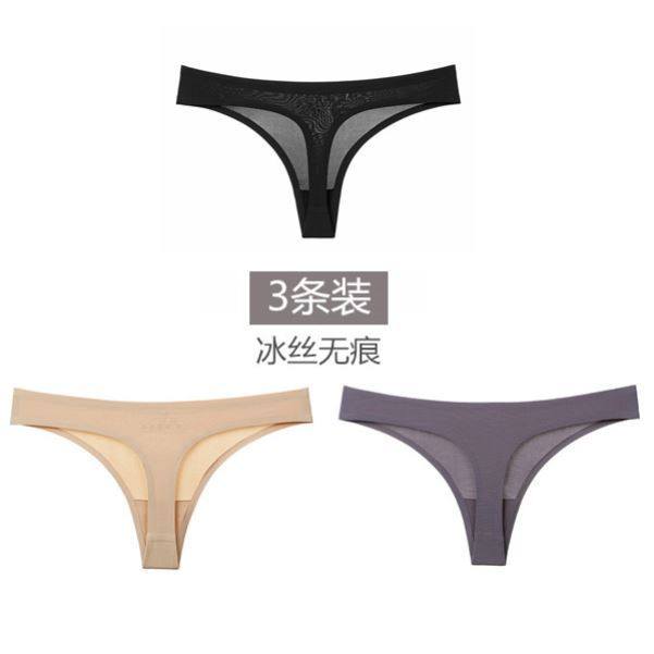Brand Bao Wen Sexy Thong Hot Flip Flop Ice Silk Seamless Sports Underwear Women's Sexy European and American Plus SizeZoom