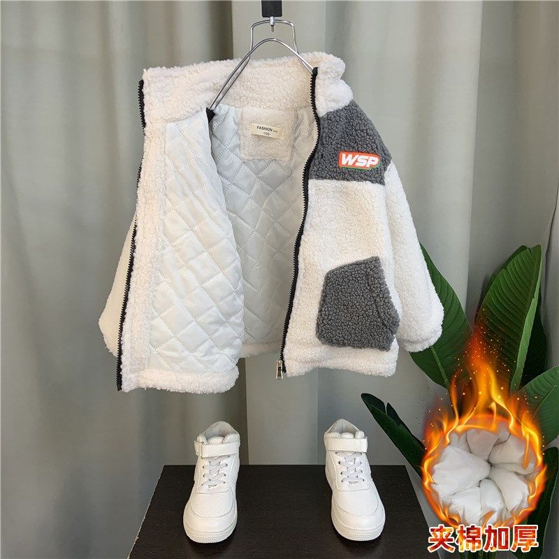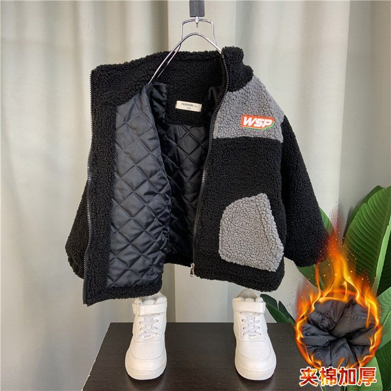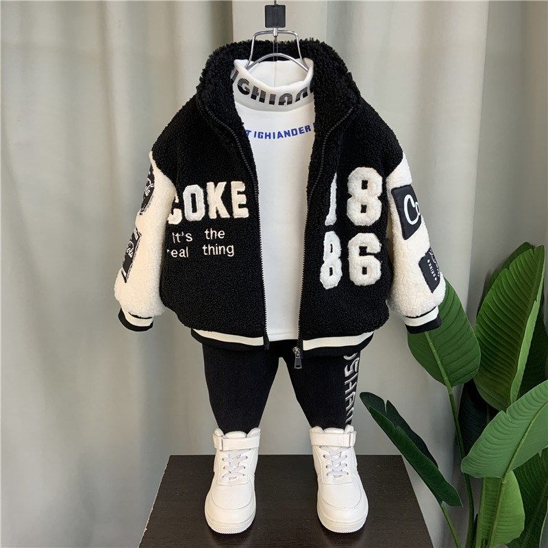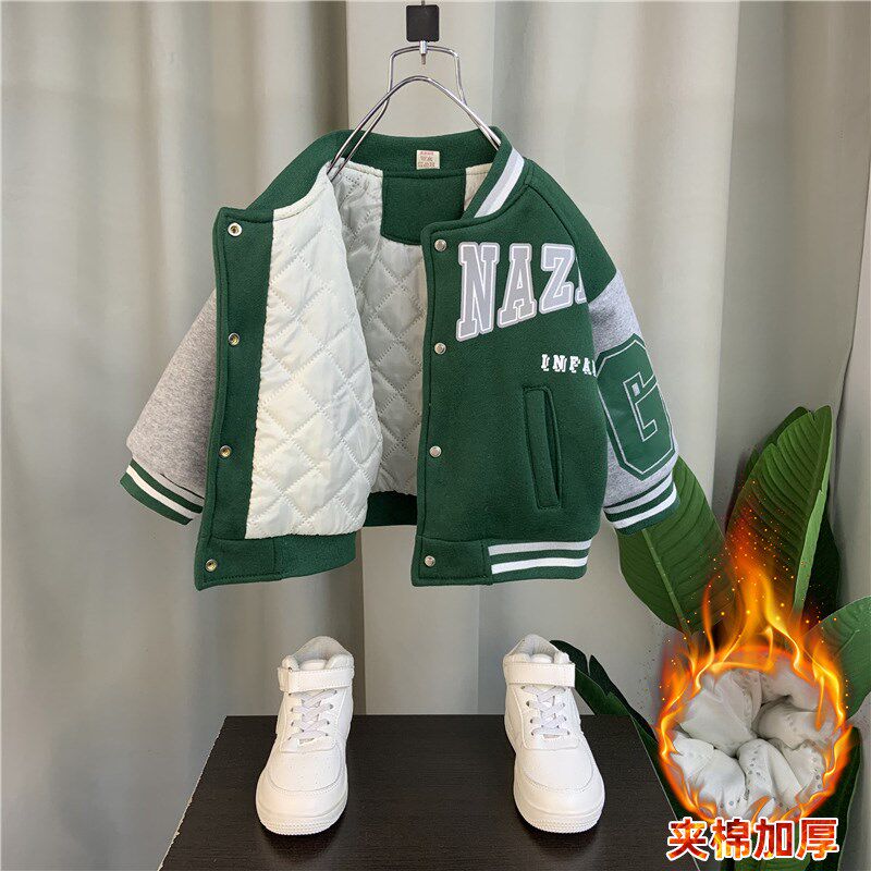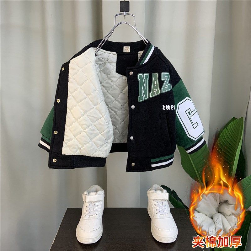 Korean boy velvet coat 2023 new baby winter cotton suit boy child thicker lamb baseball suit