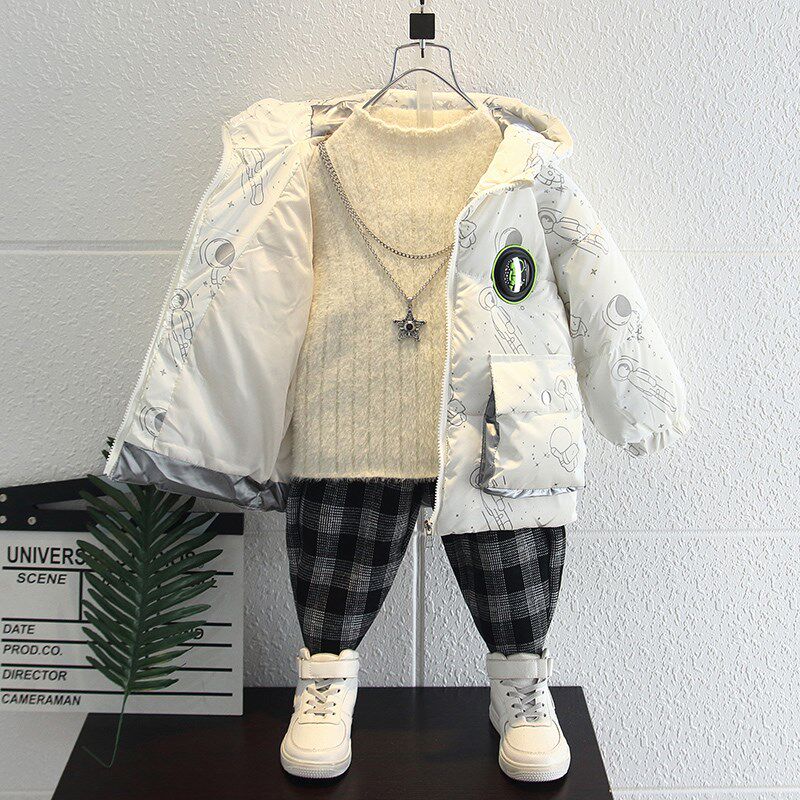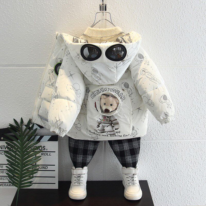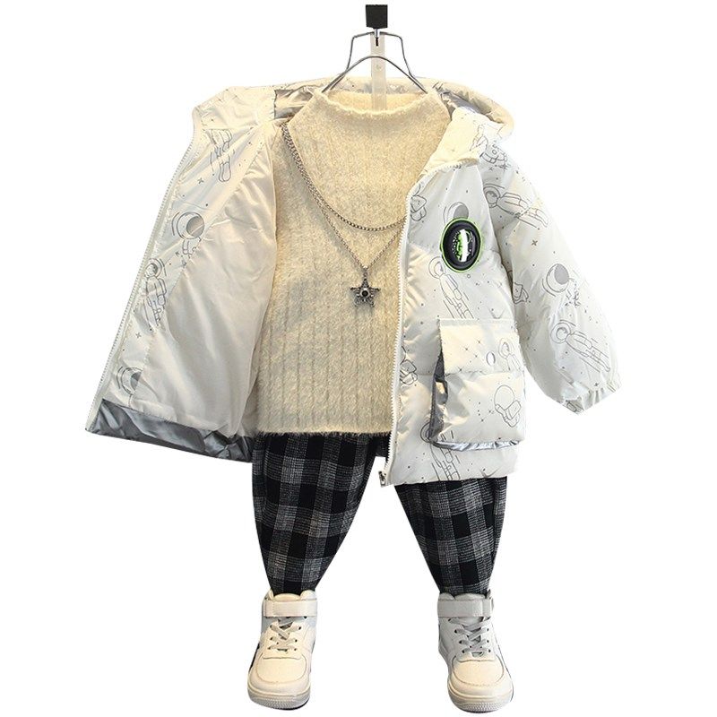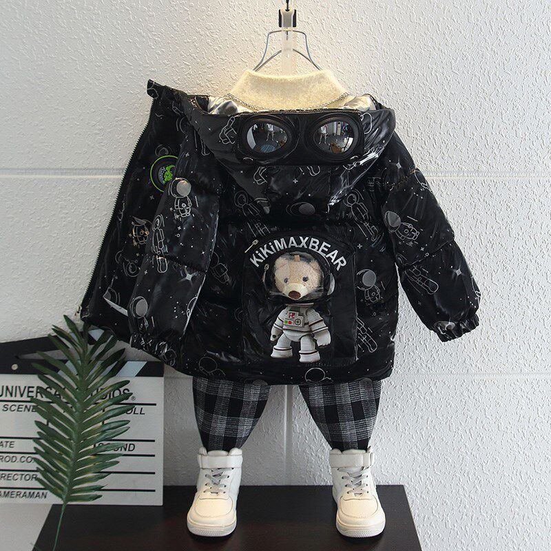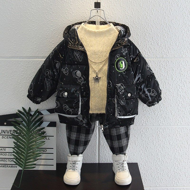 Korean boys' cotton winter clothes 2021 new cotton suit jacket baby with velvet and thick down clothing tideZoom
