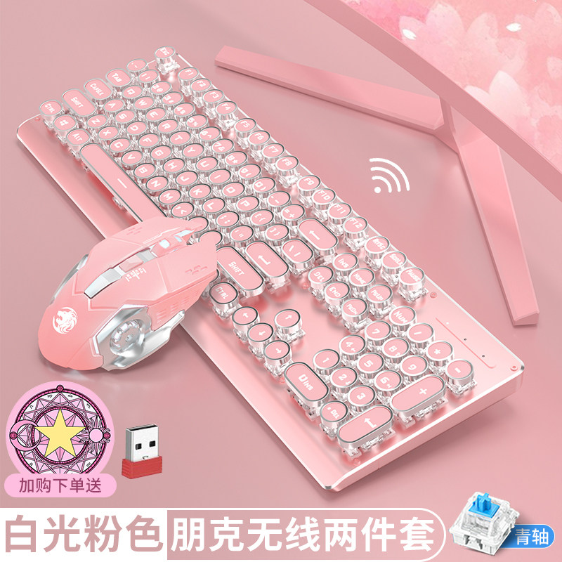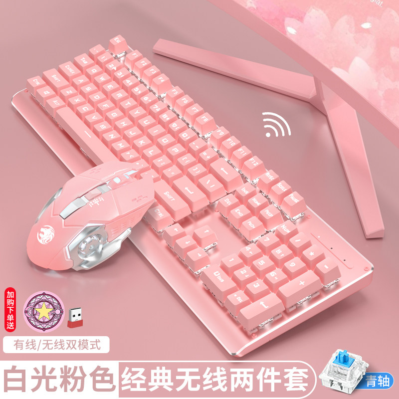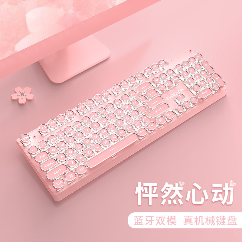 Bluetooth Double-Module Mechanical Keyboard Pink Girls Wired Wireless Universal High-Color Laptop Game Electric Rat Song Suite Two Pages of Girl Heart Cherry Boxer Round Key Riley