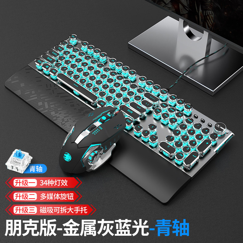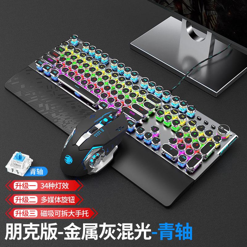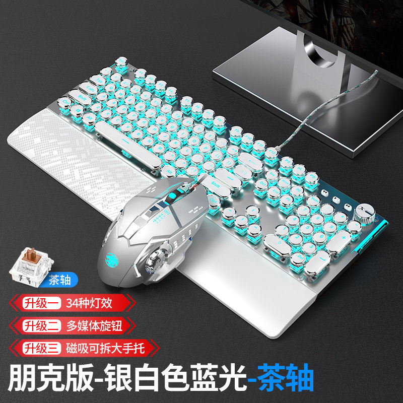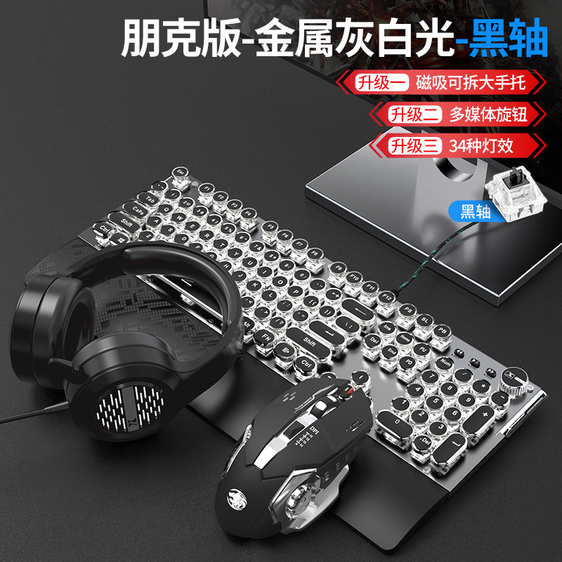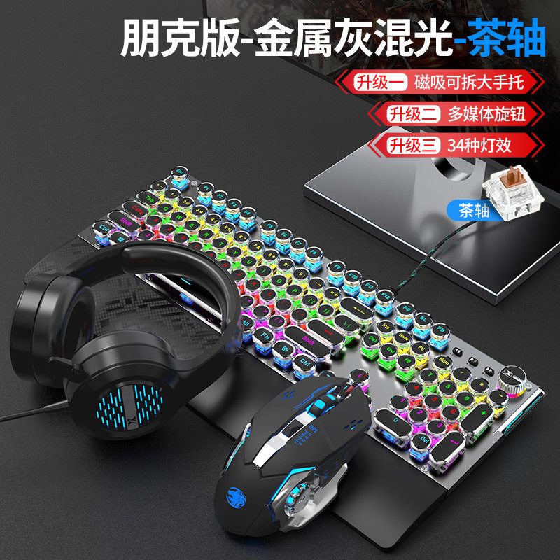 Steam punk mechanical keyboard with a hand-held video game for green axis tea axis red axis black axis mouse headset three-piece suite notebook desktop computer office round butt key mouse