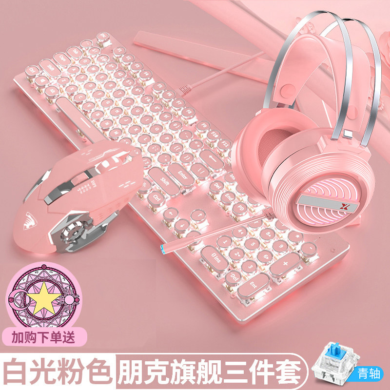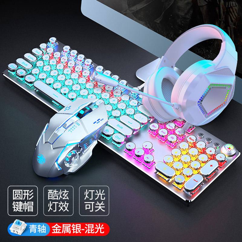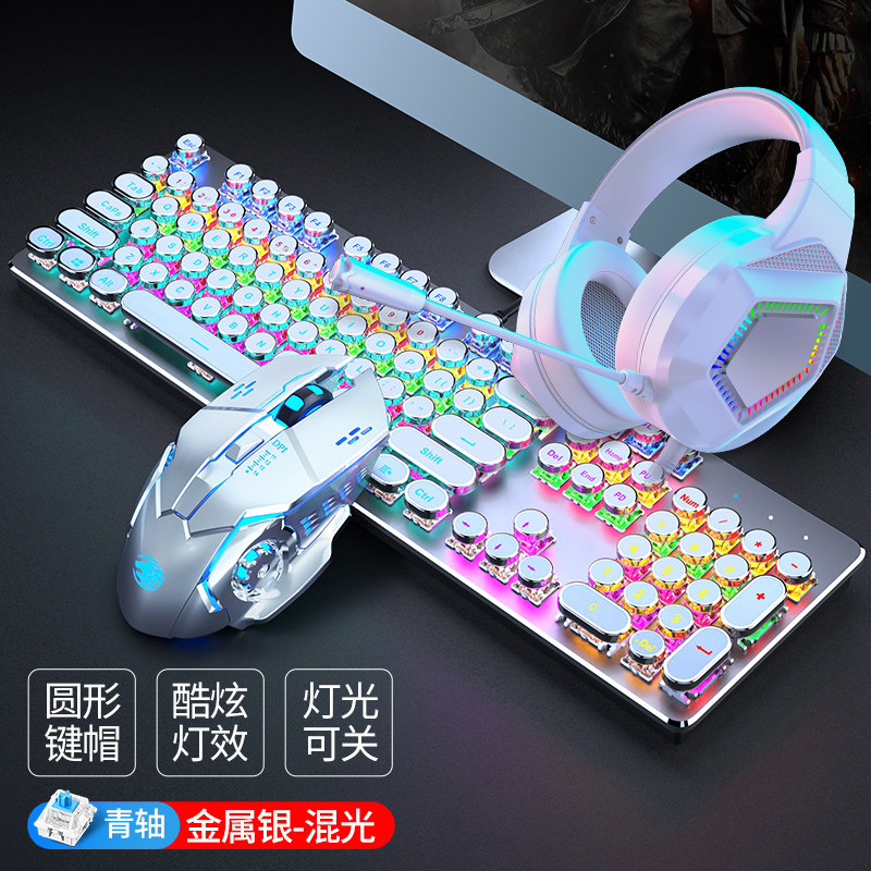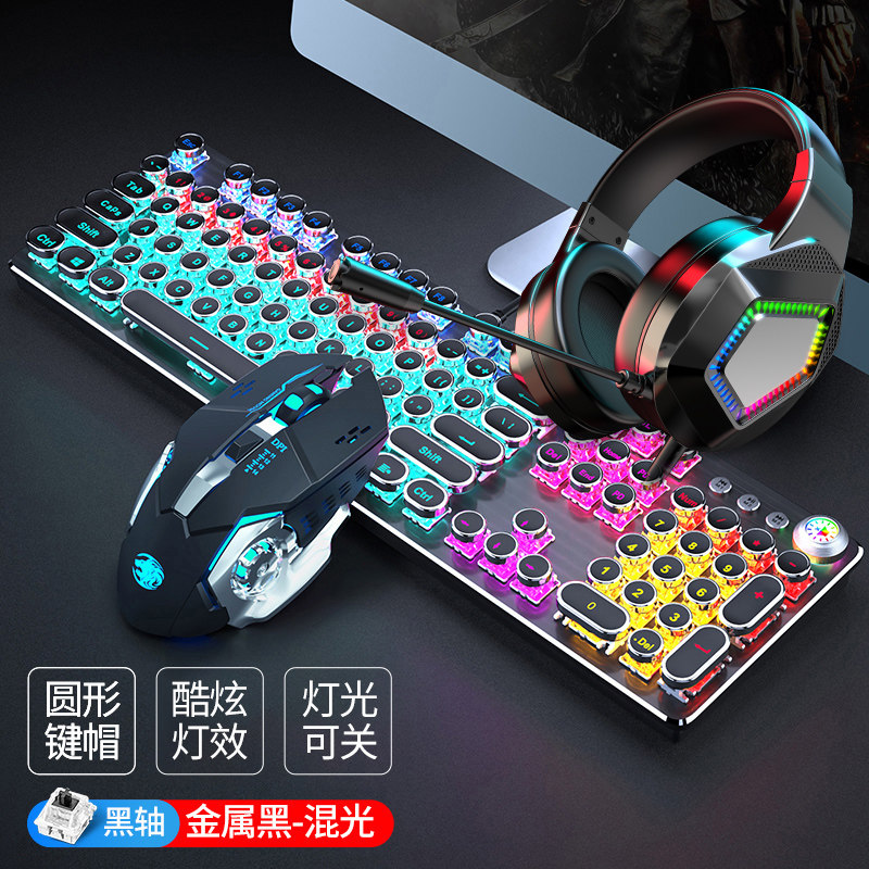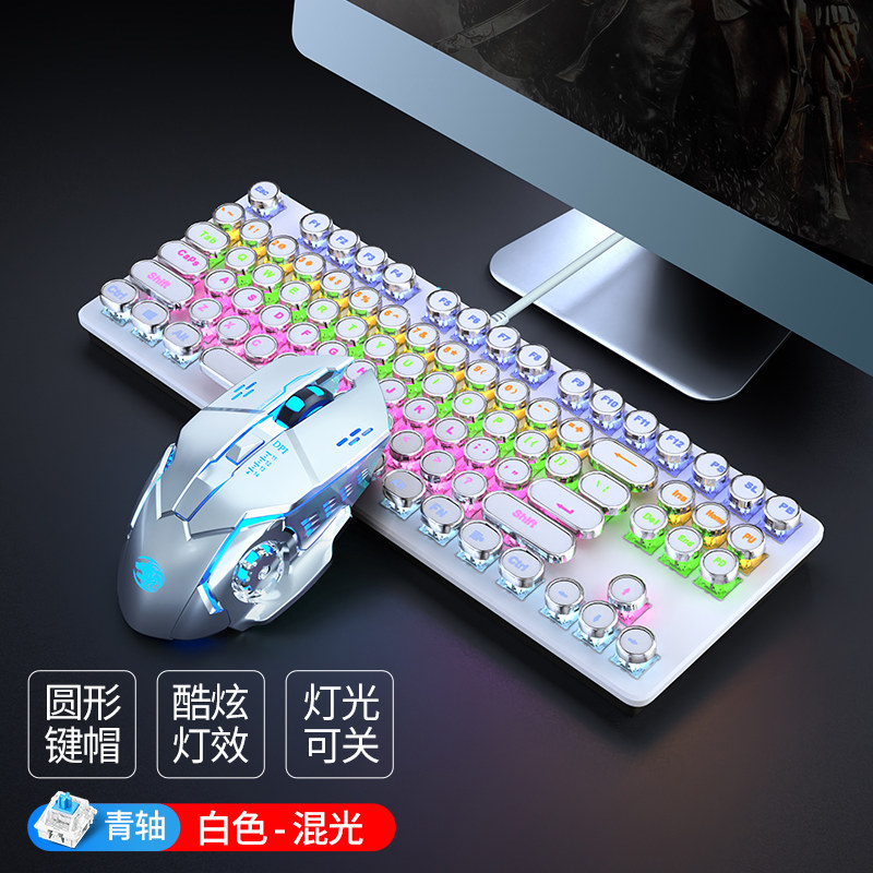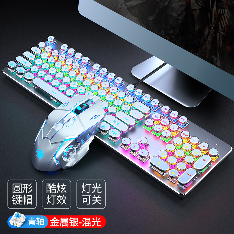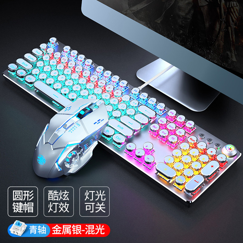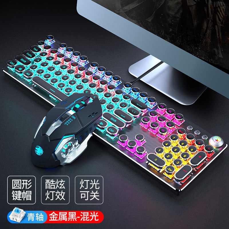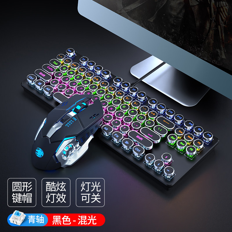 Steam punk real mechanical keyboard green shaft red axis video game csgo dedicated 87-key computer mouse suit