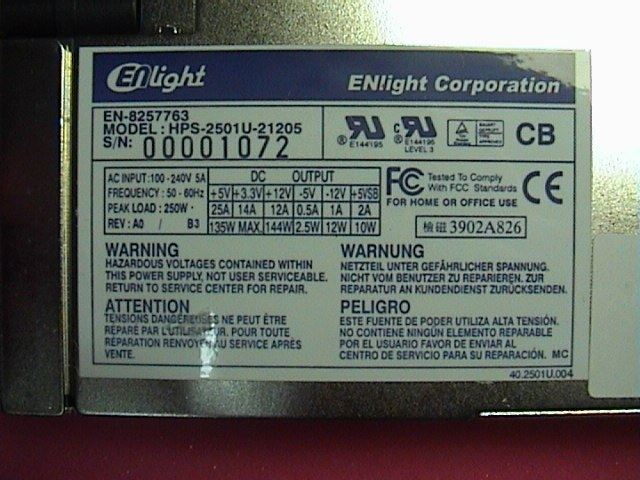 Privy Ingredients EN-8257763 HPS-250W 1U Power Source Rated Power 250W